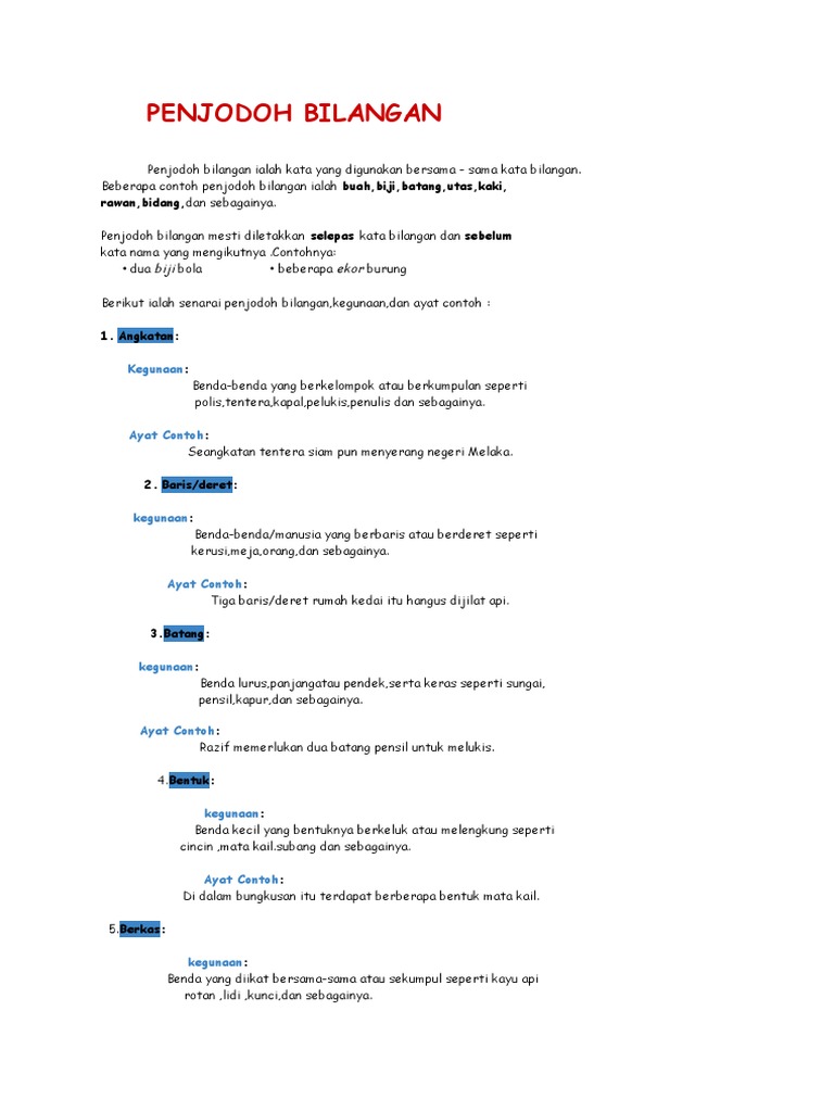 Contoh Ayat Penjodoh Bilangan Dangeloctzx